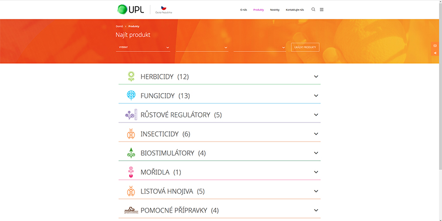 Poskytování inovativních řešení ochrany rostlin Odborný tým UPL neustále pracuje na rozšiřování portfolia produktů pro poskytnutí komplexního sortimentu přípravků na ochranu rostlin.